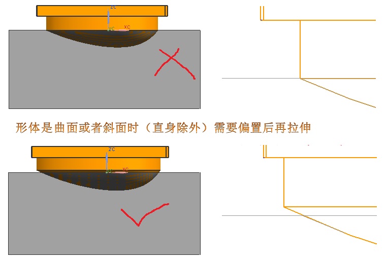 形体是曲面或者斜面时(直身除外)需要偏置后再拉伸
